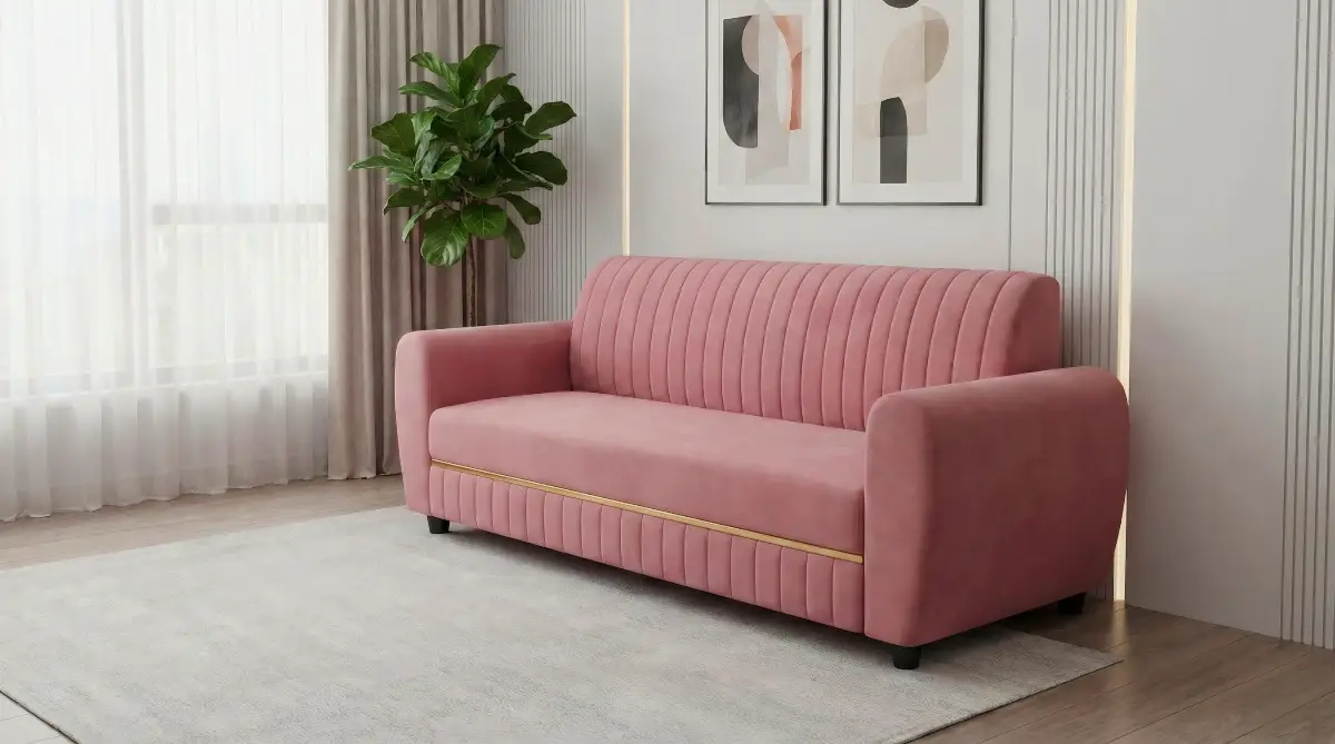 This elegant sofa set features a contemporary design with soft velvet upholstery that adds a luxurious touch to your living space. The three-seater sofa and two matching armchairs are complemented by a stylish cushioned center table, creating a complete and balanced seating arrangement. With vertically channelled detailing on the backrests and plush cushioning, this set offers both visual appeal and exceptional comfort, making it perfect for modern and chic interiors.