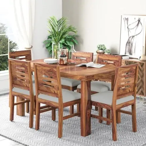 Our six seater shisham wooden dining table is the epitome of elegance and functionality. Made from high-quality shisham wood, known for its strength and beauty, this dining table comfortably seats six people, making it ideal for family meals and entertaining guests.