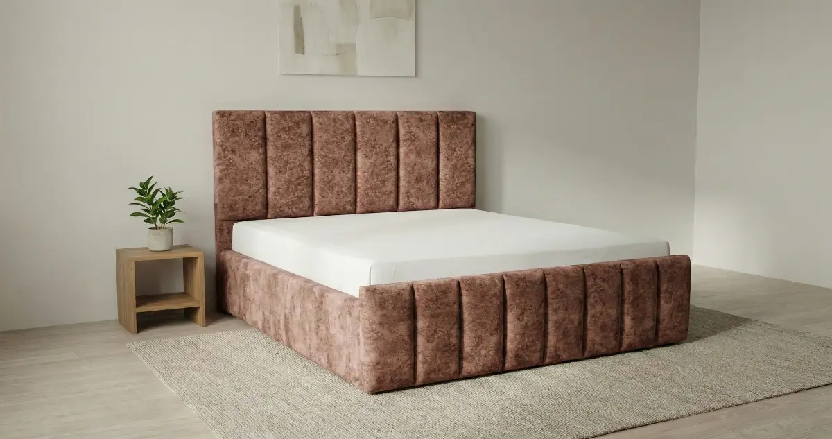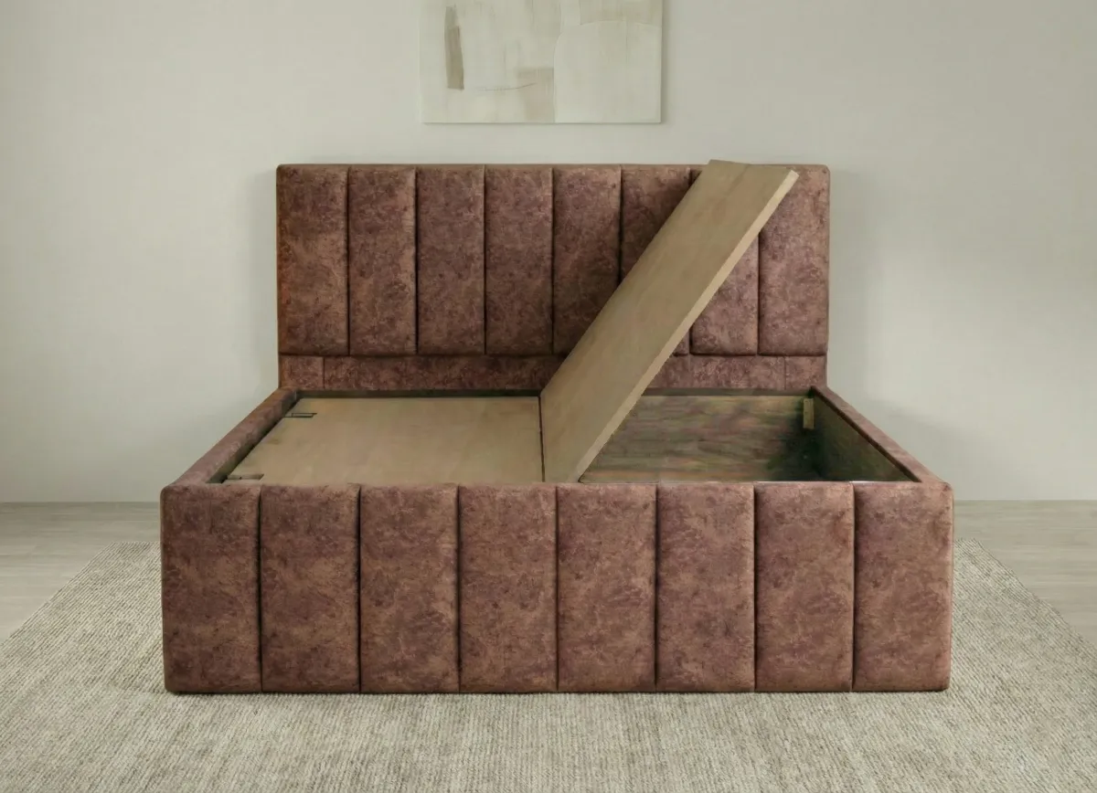 This fully cushioned bed features a plush, upholstered design that adds comfort and luxury to your bedroom. Covered in soft fabric with vertically paneled cushioning on the headboard and frame, it offers excellent back support and a cozy feel. Its modern, elegant look makes it a perfect centerpiece for contemporary interiors.