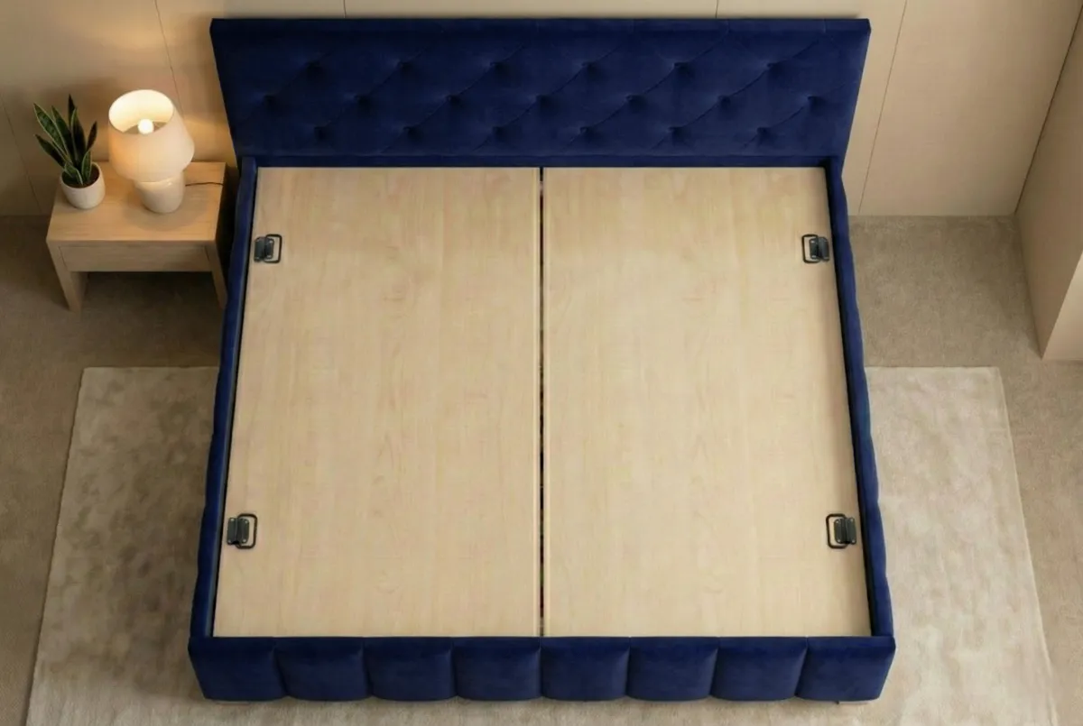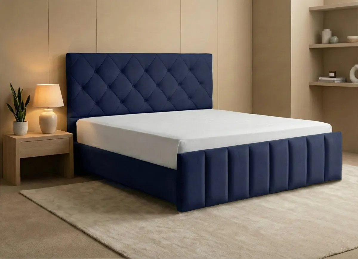 This luxury fully cushioned bed is designed to offer superior comfort with a refined, modern look. Upholstered in rich, soft fabric, it features a diamond-tufted cushioned headboard and a vertically paneled cushioned footboard for an elegant finish. The plush padding enhances relaxation while the sturdy internal frame ensures long-lasting support, making it an ideal centerpiece for contemporary and premium bedroom spaces.