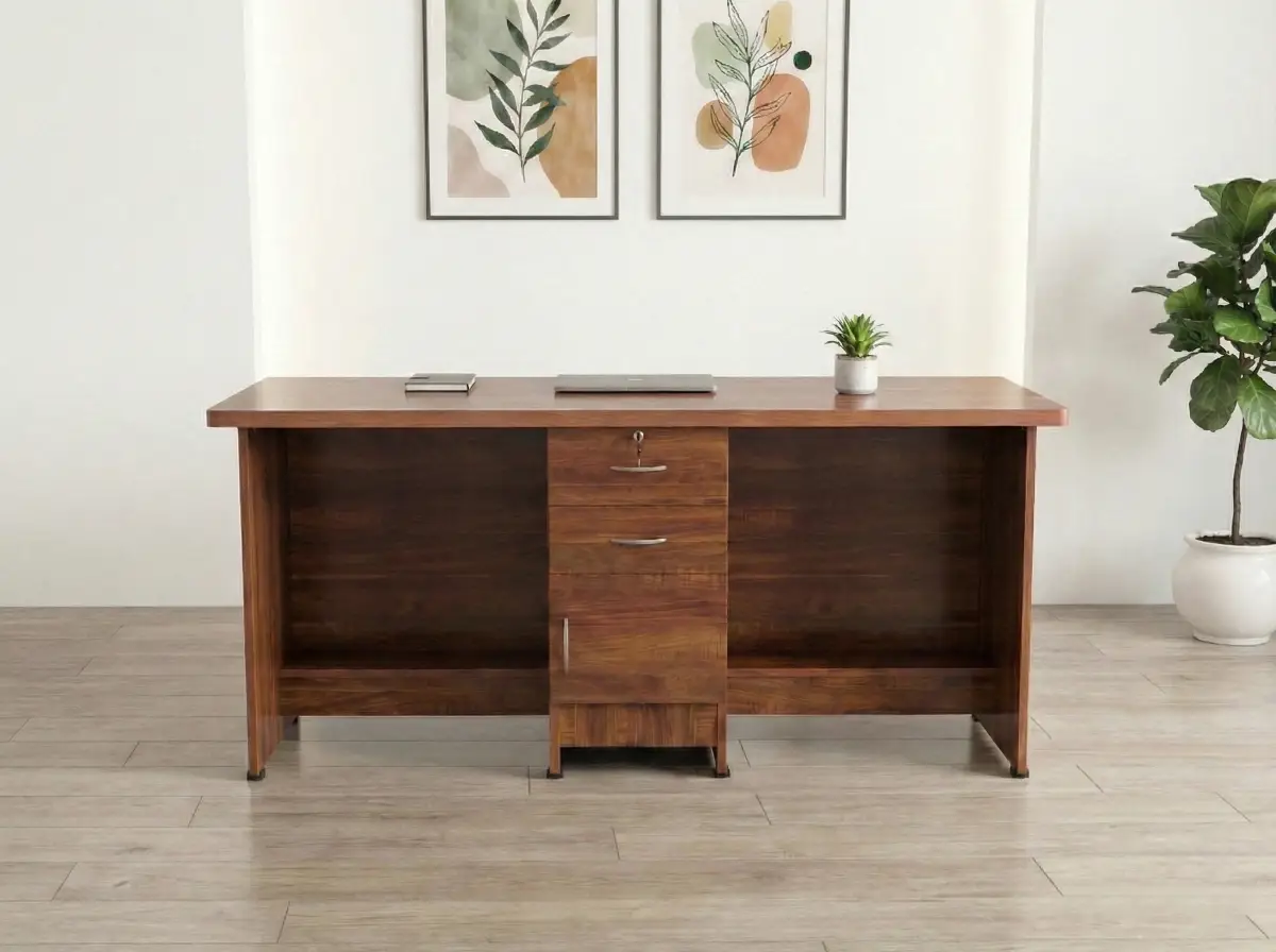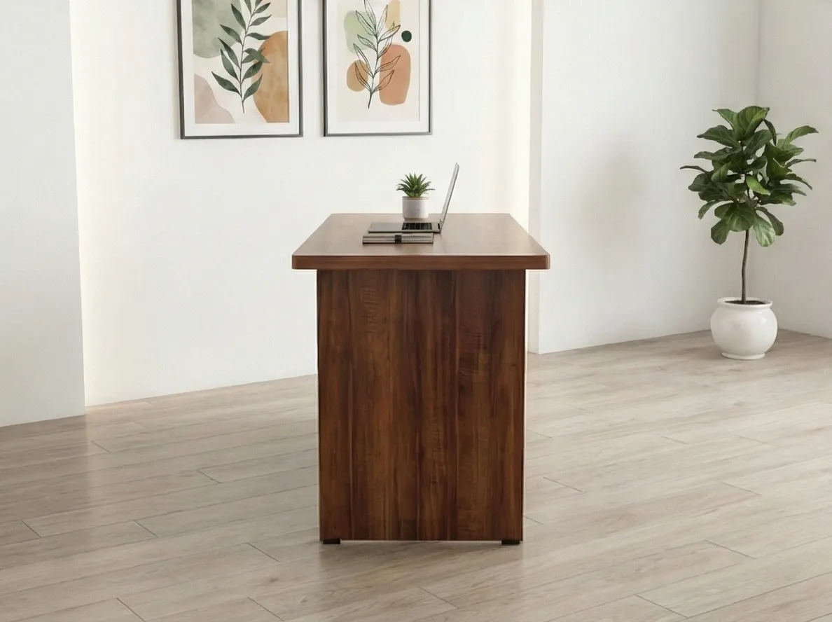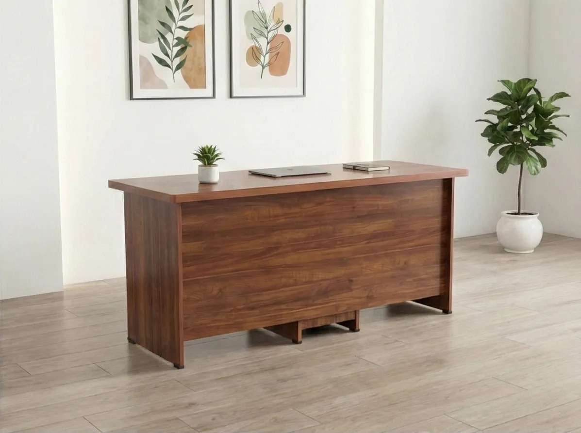 This modern wooden office desk is designed to combine functionality, durability, and professional aesthetics. Crafted with a rich wood finish, it adds warmth and sophistication to offices, home workspaces, and study rooms. The spacious tabletop provides ample room for laptops, documents, and office essentials, ensuring a comfortable and organized work environment. The desk features built-in storage with drawers and open compartments, offering convenient space for files, stationery, and accessories. Its sturdy construction and clean, minimalist design make it suitable for both corporate offices and contemporary home interiors.