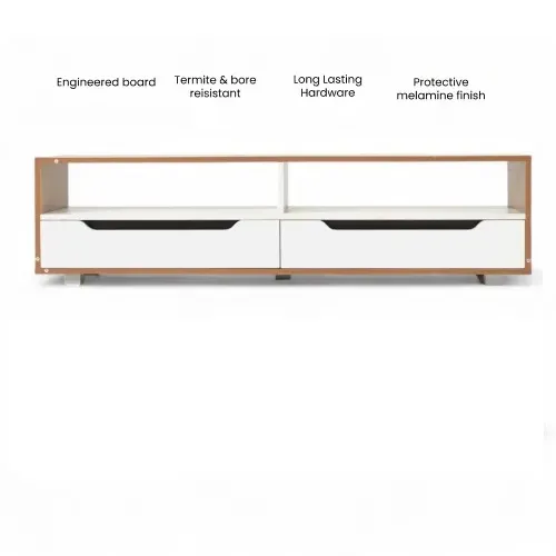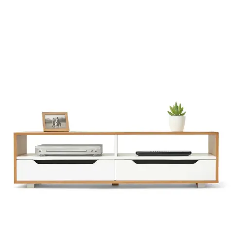 Bring elegance and simplicity into your home with the Scandinavian Style Wooden TV Console. Designed with a beautiful contrast of warm wood tones and clean white drawers, this unit delivers a modern, minimalist appeal. It features open display shelves for media players and décor, along with smooth-glide drawers for concealed storage. The low-profile structure makes it ideal for contemporary living rooms, offering both visual charm and practical organization. Durable construction and a sleek silhouette ensure long-lasting style and functionality.