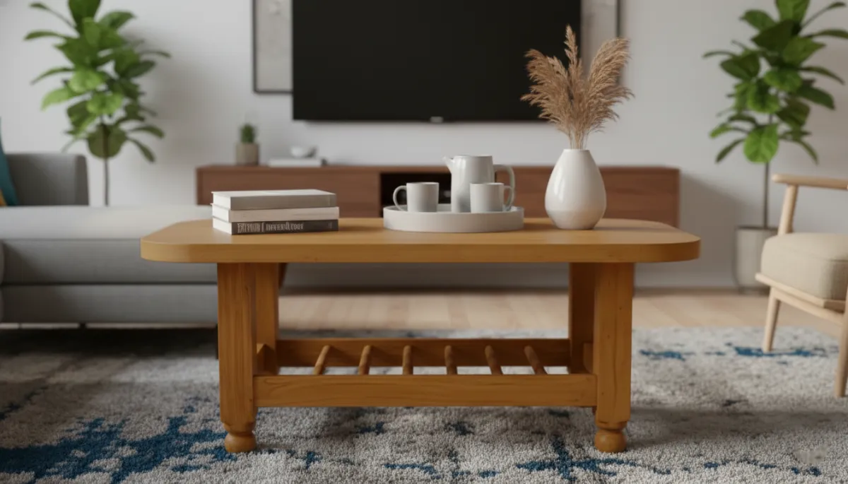 This modern solid wood coffee table brings warmth and functionality to your living space with its clean lines and natural wooden finish. Designed to complement contemporary and minimalist interiors, it features a smooth rectangular tabletop ideal for serving beverages, displaying décor, or everyday use. The table includes a practical lower slatted shelf that provides extra storage space for books, magazines, or accessories, helping keep your living room organized. Crafted from durable solid wood, it ensures long-lasting strength and stability while adding a cozy, elegant touch to your home décor.